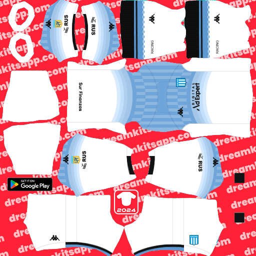 The uniforms Racing Club DLS are ideal for team followers who want to customize their game experience in Dream League Soccer . In addition, the Racing Club DLS 25 kits offer upper graphic quality, thanks to the resolution of 512×512 .